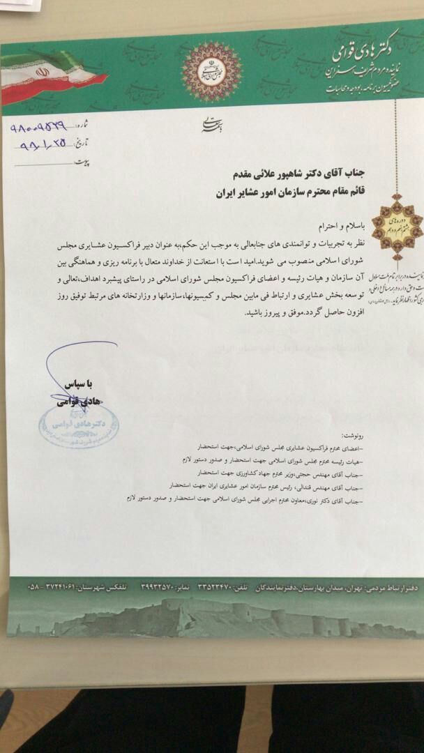 با حکم رئیس فراکسیون عشایری مجلس شورای اسلامی