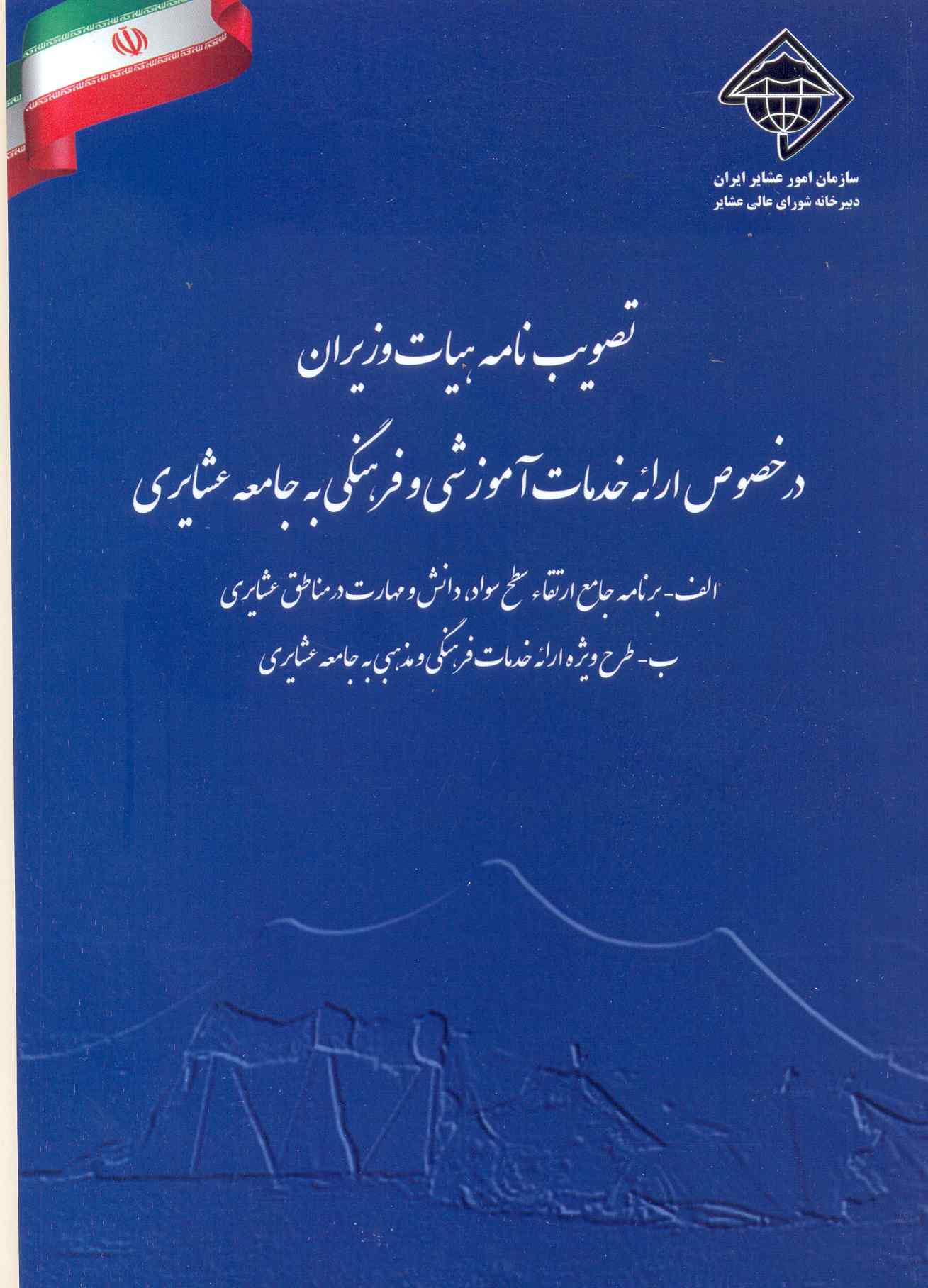 در اين كتاب كه با پيشگفتاري به قلم رئيس سازمان امور عشاير آغاز شده، در دو بخش مجزا به مصوبات هيات وزيران در خصوص "برنامه جامع ارتقاء سطح سواد، دانش و مهارت در مناطق عشايري" و "طرح ويژه ارائه خدمات فرهنگي و مذهبي به جامعه عشايري" پرداخته شده و متن كامل اين مصوبات آورده شده است.