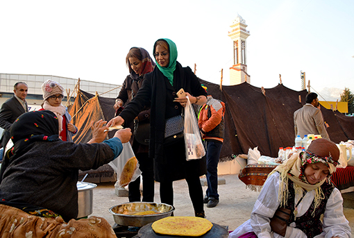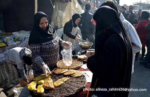 پخت نان و عرضه آن به بازدیدکنندگان توسط عشایر خراسان شمالی