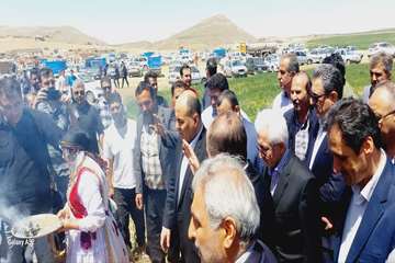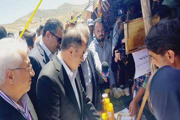 وزیر جهاد کشاورزی و همراهان در محل برگزاری گردهمایی از سیاه چادرهای برپا شده به منظور معرفی ظرفیت های تولیدی و اقتصادی و فرهنگی عشایر استان بازدید کردند.