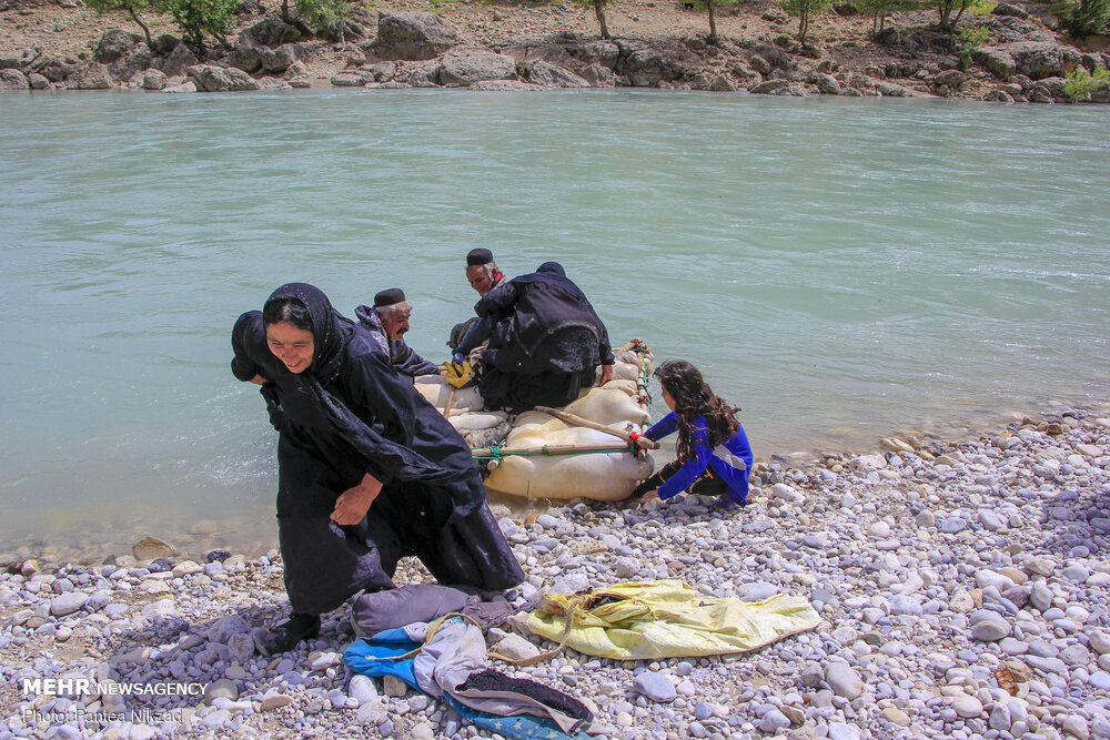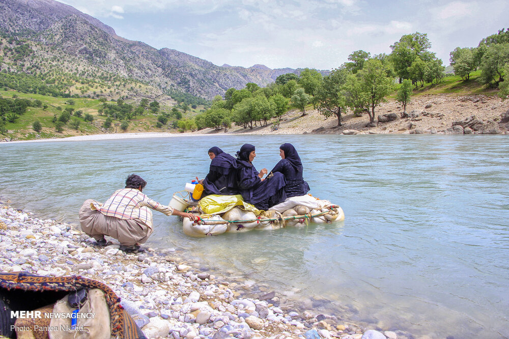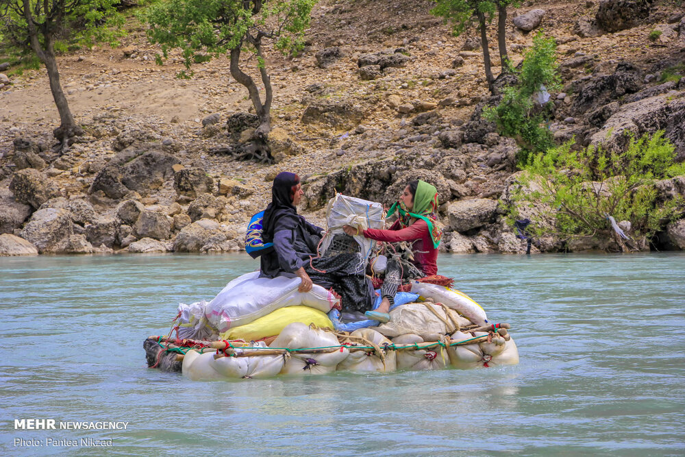 ایل راههای عشایری استان چهارمحال و بختیاری نه تنها از ارتفاعات سخت گذر و پرمخاطره گذر میکند بلکه با چالش عبور از رودخانههای خروشان نیز همراه است. طبق سنت دیرینه عشایر بختیاری، عبور از رودخانه با بَلَم (یا به گفته اهالی گزستان "سینی") انجام میشود.