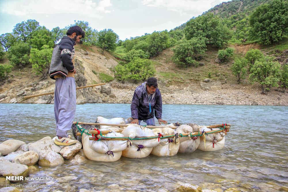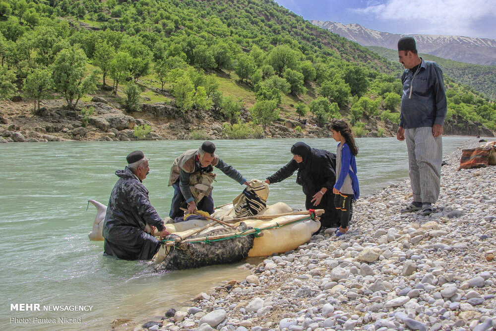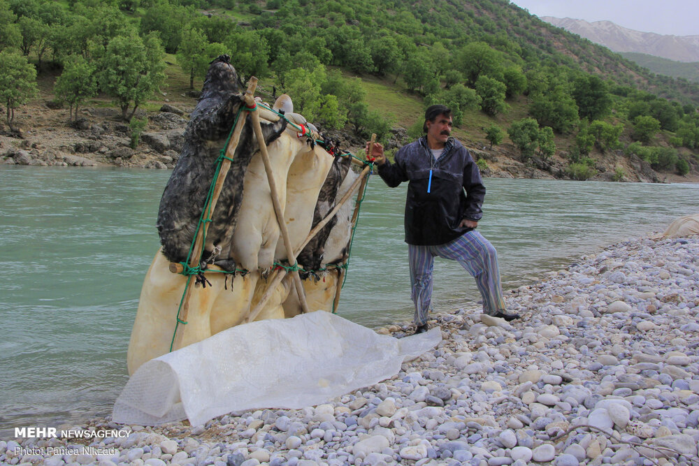 به گزارش پایگاه اطلاع رسانی سازمان امور عشایر ایران به نقل از خبرگزاری مهر، بلم از چندین مشک باد شده که با طناب و چوبهایی بهم متصل شده، ساخته میشود. یک نفر نیز مسئول هدایت آن است که با پا زدن در آب، بر جریان رودخانه غلبه میکند.