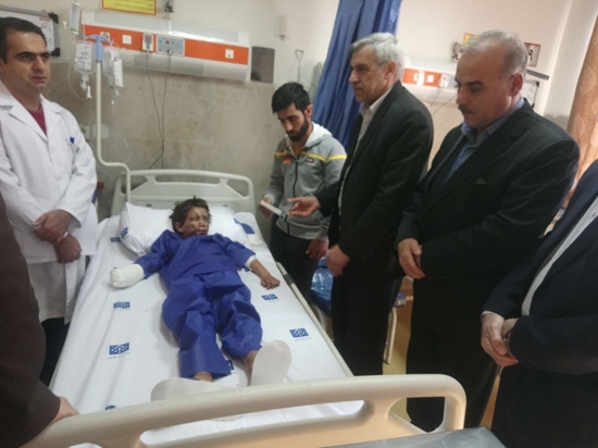 رئیس سازمان امور عشایر ایران با حضور در بیمارستان فارابی در جریان چگونگی مداوای از نوجوان عشایری که بر اثر انفجار مین دچار آسیب جدی از ناحیه دست و صورت شده است قرار گرفت.
