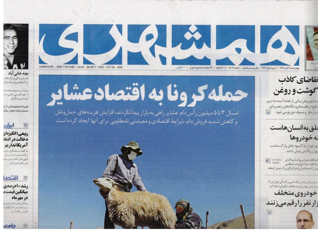 جامعه عشایری به ندرت موضوع و تیتر اول رسانه های مکتوب بویژه روزنامه­ های سراسری قرار می گیرند و حداقل در ربع قرن گذشته عشایر تیتر اول روزنامه­ ها نبوده ­اند اما طی سه ماه اخیر و تاثیر کرونا بر زندگی و اقتصاد عشایر و کشور، موضوع عشایر دو بار تیتر اول روزنامه­ های سراسری کشور شده است.
