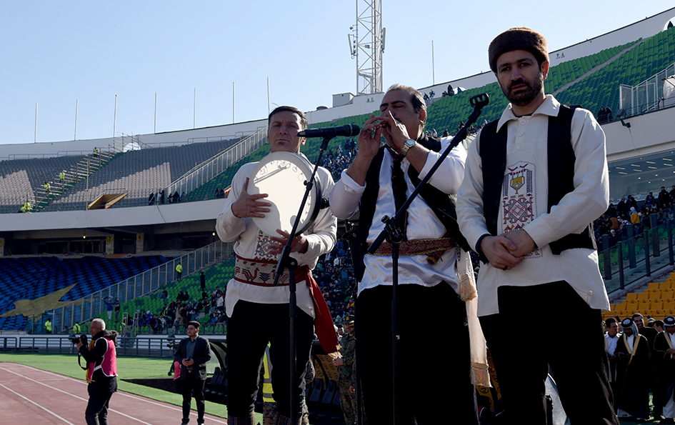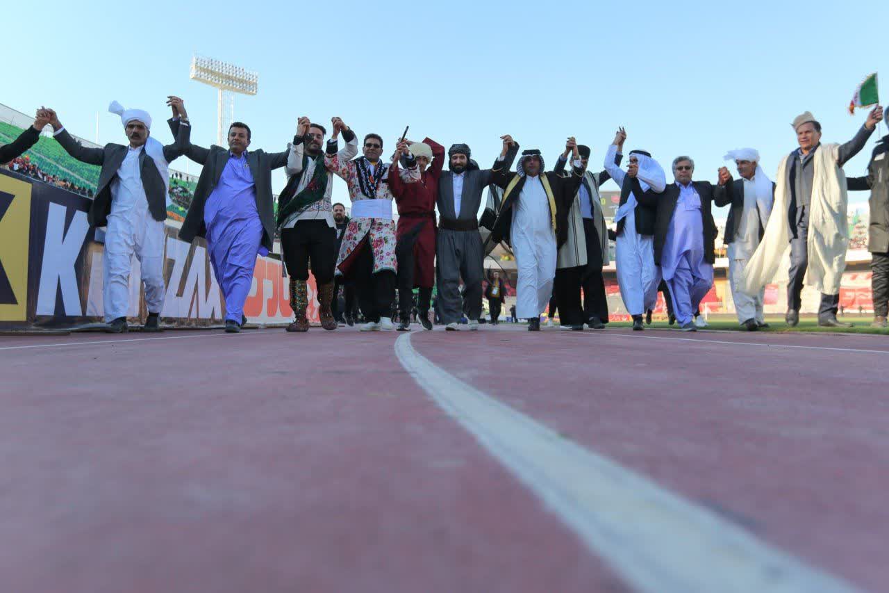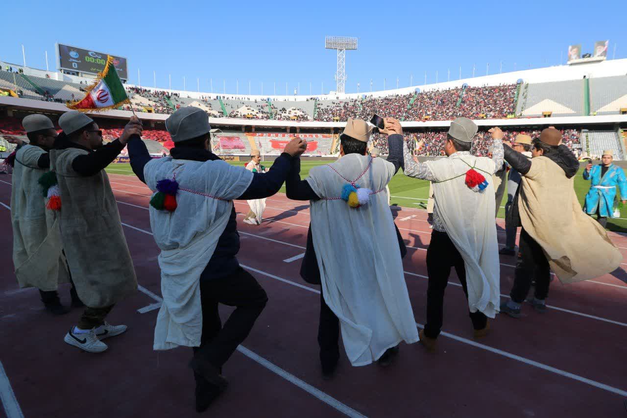 پیش از برگزاری بازی، گروهای موسیقی محلی ایلات و عشایر ترک، لر، کرد، ترکمن، کرمانج و خراسان جنوبی بیش از دو ساعت به اجرای جذاب موسیقی های محلی پرداختند که با استقبال گرم و پرشور تماشاچیان حاضر در ورزشگاه مواجه شد و بازتاب گسترده‌ای نیز در رسانه‌ها داشت.