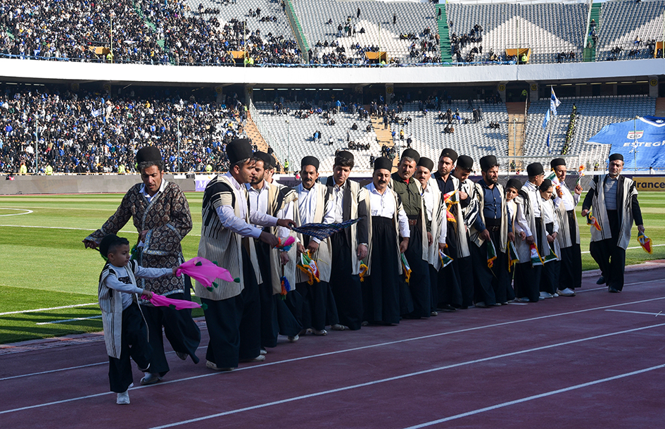 همراه با بازیکنان دو تیم، 22 نفر از فرزندان عشایر از ایلات سراسر کشور با لباس‌های محلی زیبا و سنتی خود در مستطیل سبز رنگ حضور پیدا کرند و اصالت و فرهنگ غنی عشایر ایران در معرض دید بینندگان تلویزیونی و تماشاچیان حاضر در ورزشگاه یکصدهزار نفری آزادی قرار گرفت.