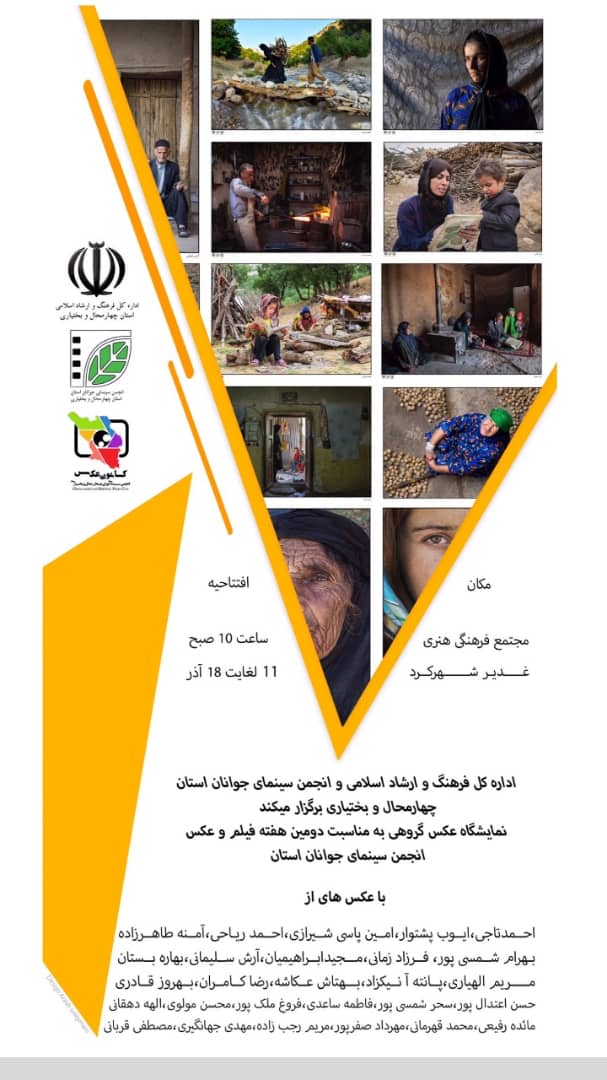 همزمان با برگزاری جشنواره فیلم کوتاه "بام ایران" و دومین هفته فیلم و عکس، نمایشگاه عکس گروهی هنرمندان عکاس از زندگی عشایر چهارمحال و بختیاری در نگارخانه شهید شهرانی مجتمع فرهنگی هنری غدیر شهرکرد گشایش یافت.