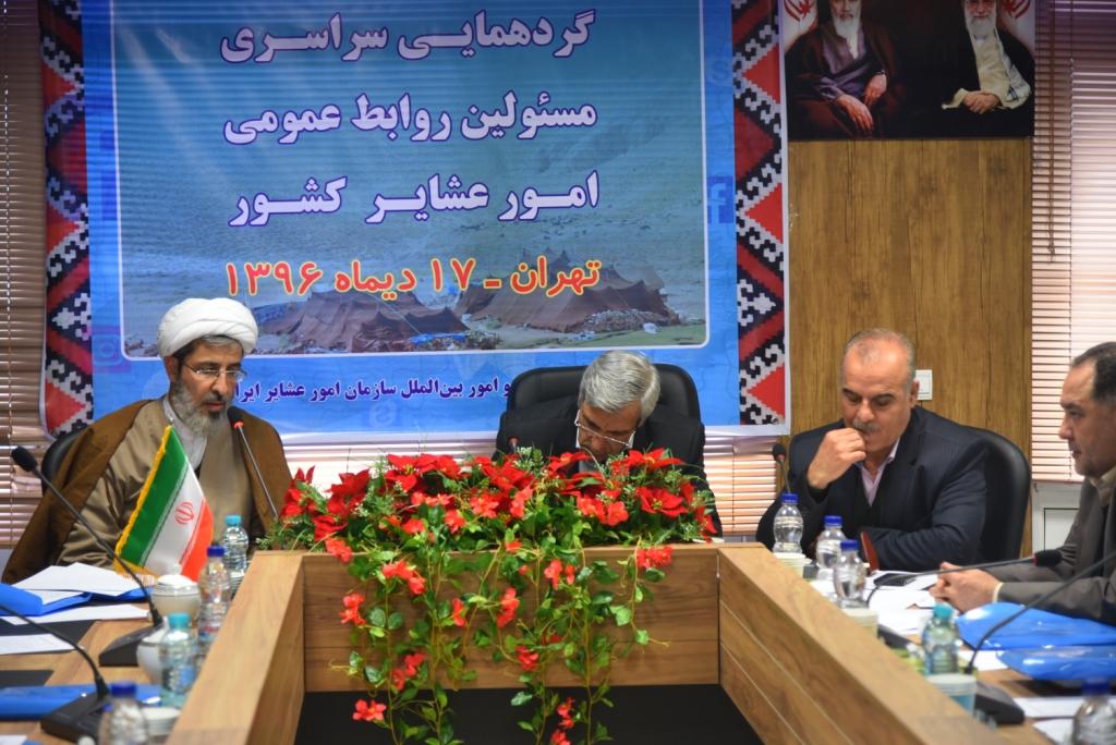 گفتنی است، گردهمایی یکروزه مسئولین روابط عمومی های امور عشایر سراسر کشور روز یکشنبه 17 دی ماه با حضور کرمعلی قندالی رئیس سازمان امور عشایر ایران، هومن فتحی مدیرکل دفتر امور بین الملل و سازمان های تخصصی وزارت جهاد کشاورزی، شهاب سیدمحسنی معاون مدیرکل روابط عمومی و اطلاع رسانی وزارت جهاد کشاورزی، بهرام میراخورلی مدیر حوزه ریاست سازمان امور عشایر و اعضای شورای روابط عمومی این سازمان در تهران برگزار شد.