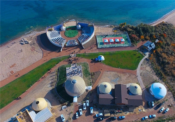 این آمفی تئاتر در ساحل دریاچه ایسیک-کول در روستای بسیری ساخته شده است.